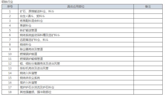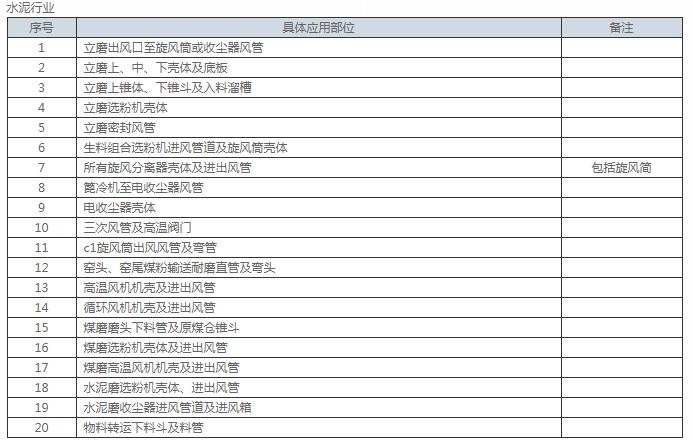 催化裂化装置中的旋风分离器、反应器、再生器、烟道、催化剂输送管道及一氧化碳余热锅炉等的内衬。